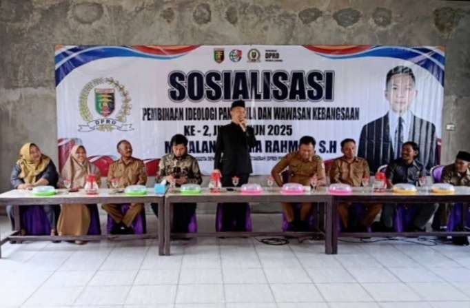 Way Kanan, – Anggota Dewan Perwakilan Rakyat Daerah (DPRD) Provinsi Lampung, M. Galang Putra Rahman, melaksanakan sosialisasi Pembinaan Ideologi Pancasila dan Wawasan Kebangsaan di Kampung Umpu Kencana, Kabupaten Way Kanan.